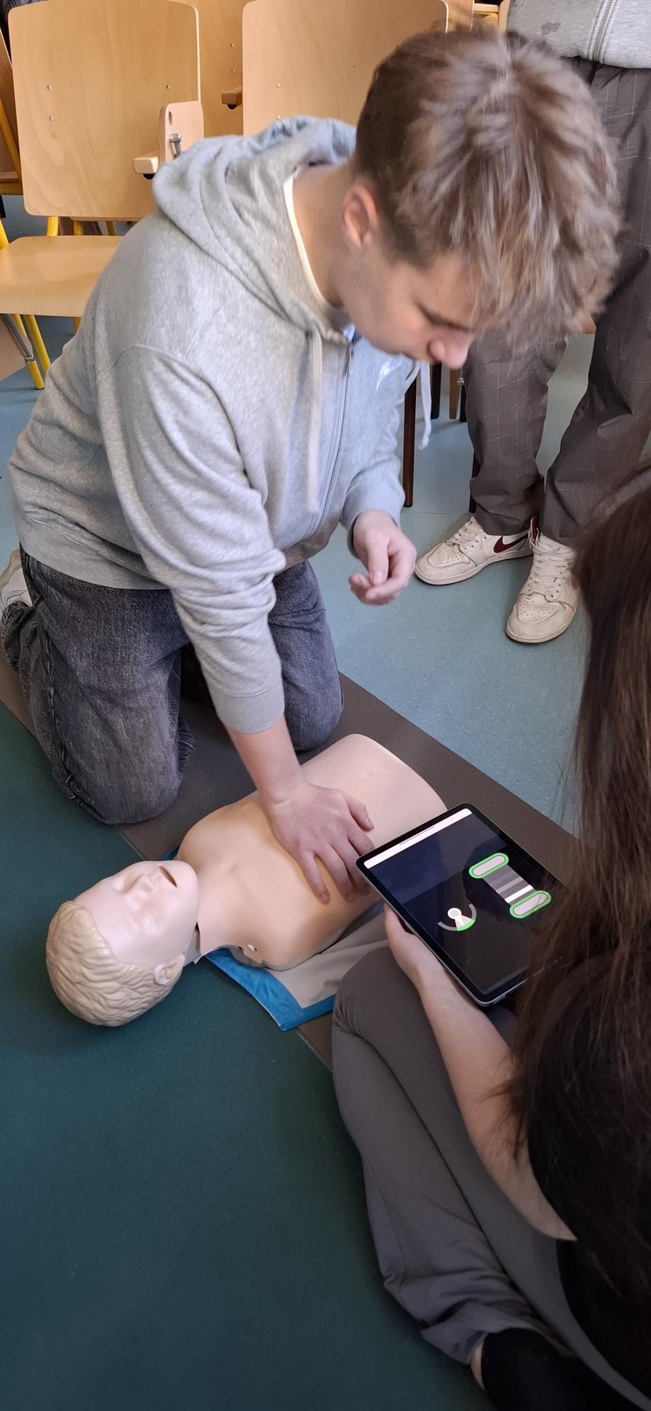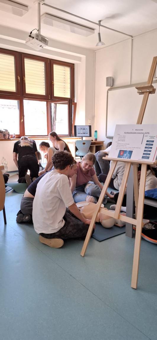 Žáci 3. ročníku oboru praktická sestra připravili pro studenty prvních ročníků gymnázia projektový den zaměřený na první pomoc. Cílem celé akce bylo předat mladším spolužákům základní, ale velmi důležité dovednosti, které mohou v krizových situacích zachránit lidský život.