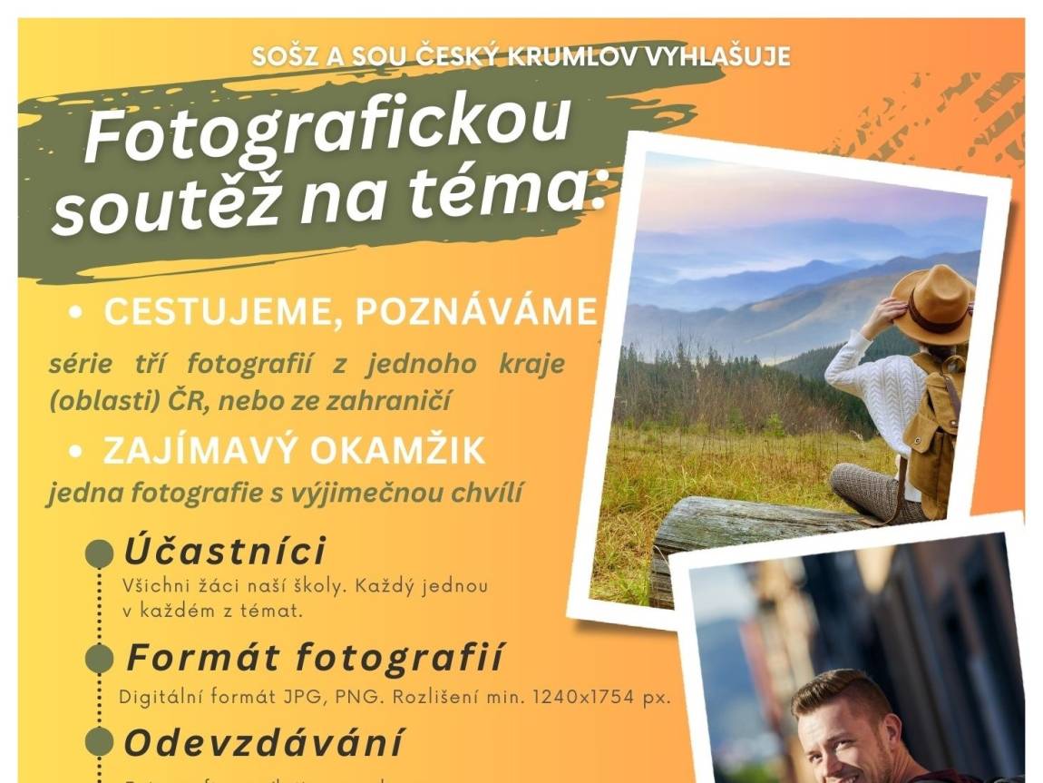 Škola vyhlašuje fotografickou soutěž pro všechny fandy fotografování, ale i pro začátečníky a vlastně pro všechny, kterým se podařilo vyfotit něco pěkného, zajímavého či šokujícího, a bylo by škoda se o to nepodělit! Pošlete fota do 15. 10. 2025 na foto@zdravkackr.onmicrosoft.com. Vše o podmínkách soutěže v připojeném letáčku.