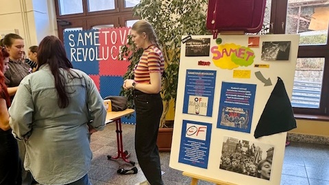 Pátek 14. 11. 2025 patřil Sametovému festivalu. Samet na školách je projekt, který ve studentech probouzí zájem o témata spojená se 17. listopadem. Dává možnost aktivně se zapojit a prožít tento den po svém.